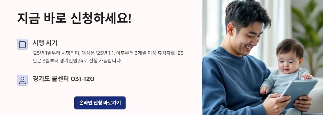아빠의 육아 참여가 중요해지는 요즘, 경기도에서 든든한 지원을 해드립니다. 육아휴직을 고민하고 계신다면 주저하지 마시고 신청하세요!