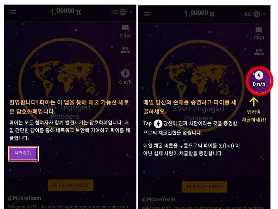 ==> 초대코드 "kapeus" 초대코드 입력시 1파이지급, 채굴속도 25% 상승