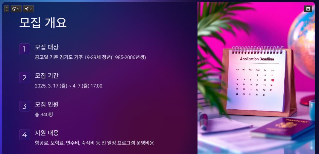 오늘은 경기도 청년들을 위한 글로벌 연수 프로그램인 **"경기청년사다리 프로그램"**을 소개해 드리려고 합니다.